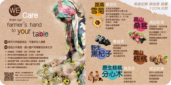 Company Profile WE∙Shalom International Ltd. was established in Hong Kong in May 2015. ‘Shalom’ means ‘wholistic well-being’. The founder is a Xinjiang guru with 10+ years of rural community development experience in alleviating poverty. Year 2020 is her 20th year of stay in Hotan, Xinjiang, China. Echoing the national strategy, “One Belt, One Road”, we have established this social enterprise in order to enhance the wholistic development of the Xinjiang people. Moreover, promoting the good natural products of the Silk Road to consumers in Hong Kong and other regions can help both the producers and the customers enjoy wholistic health. The company was successfully accepted as a “listed social enterprise” by Social Enterprise Business Centre under The Hong Kong Council of Social Service in the Fall 2019 and “Trade Partner” of Fair Trade Hong Kong in mid 2020. Download Company Leaflet (2015 Version) Download Company Product Brochure (2019 Sept New Version)