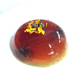 Ingredient:Water 500g, sugar 46g, snow chrysanthemum 5g, and gelatin sheet 10g 1. Soften the gelatin sheet in ice water and dry it 2. Heat the water and add snow chrysanthemum for 20 minutes 3. Use sieve to remove the snow chrysanthemum after the dip 4. Add sugar to the chrysanthemum water and reheat it; then dissolve the gelatin sheet in the water 5. Pour the solution into a semi-circular mold and snow it for 3 to 4 hours until complete solidification 6. Dip the bottom of the mold with hot water for demolding, and enjoy afterward