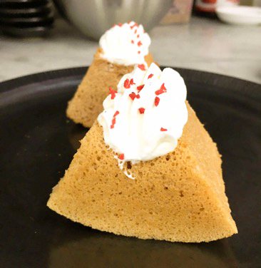 Ingredient:egg white 4 nos., sugar 40 g, salt (1 pinch), egg yolk 4 nos, sugar 20 g, vegetable oil 42 g, milk 60 g, snow chrysanthemum 2-3 g, flour 70 g 1. Heat the milk, mix with snow chrysanthemum, bake in oven for 10 minutes then separate slag for juice 2. Beat 20g egg yolk with sugar, add vegetable oil and mix well; add the chrysanthemum infusion in Step 2, mix well; then add 70g flour and mix well 3. Beat the egg white to foam, add 20g sugar to the wet foam, add the remaining 20g sugar to dry foaming 4. Add 1/3 egg white to egg yolk batter, gently mix well; then add the remaining white, mix until evenly blended 5. Preheat the oven to 180 degrees for 30 minutes 6. Pour the batter into the cake mold and bake for 30 minutes until cooked Take out from the oven, flip the cake over to prevent it from shrinking Enjoy after cooling