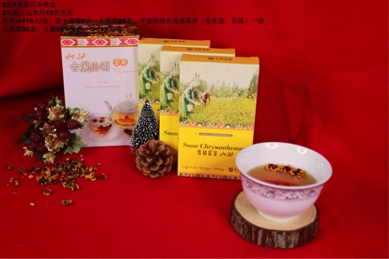 Our snow chrysanthemum is from Kunlun Mountains area of Xinjiang; where is well known as the birthplace of the Kunlun snow chrysanthemum, and continually produces the best snow chrysanthemums. The snow chrysanthemums are grown above 2,000 meters upon Kunlun Mountains, irrigated by clean snow water, hand-picked and air-dried when ripe. Function